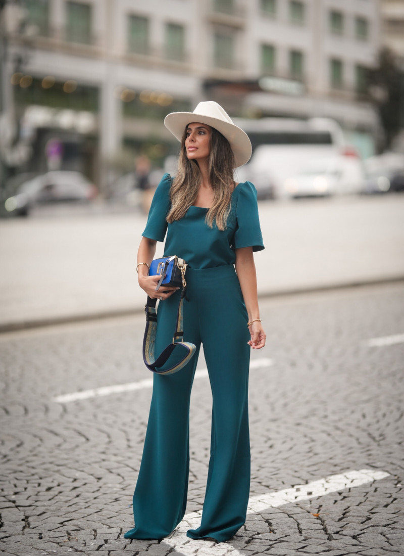Hose in grünem Ton. Kombinieren Sie sie mit der Bluse für ein perfektes Outfit.