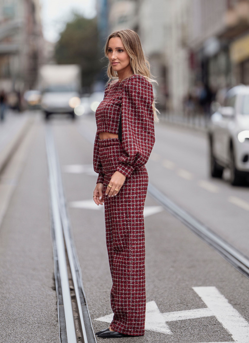 Hochbundhose. Italienischer Premium-Tweed-Stoff. Unsichtbarer Reißverschluss an der Seite. Limitierte Auflage. Bequem und stilvoll für jede Veranstaltung.