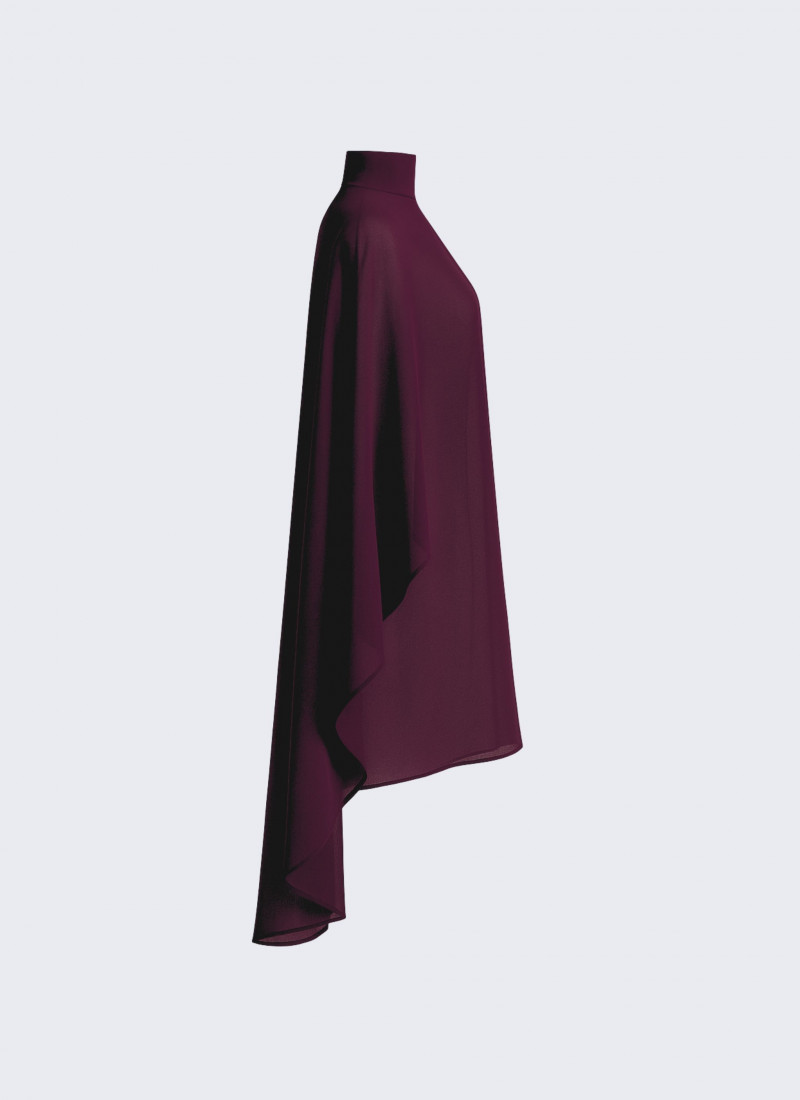 Cape mit Kragen. Wird mit Knöpfen im Nacken geschlossen. Transparenter Chiffonstoff, seidig und weich. In mehreren Farben erhältlich.