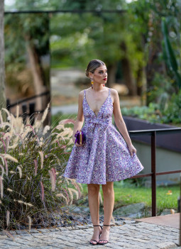 Short jacquard dress. Fully lined. Invisible side zipper.