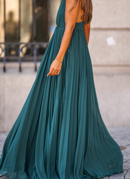 LAST ONES - GREEN PLEATED DRESS Size M Color GREEN