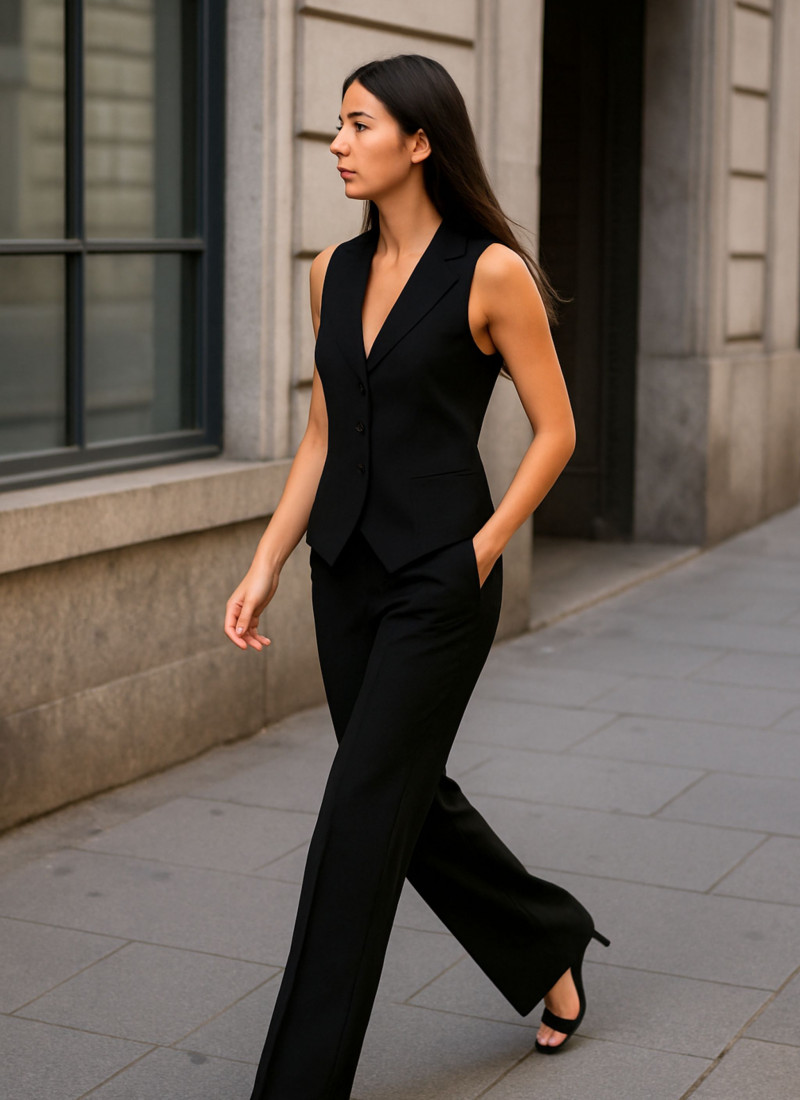 Vest with front button closure. Side pockets. Fully lined. Combine it with the trousers in the same color and fabric.
