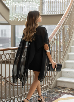 Capa / Chal en tejido de chiffon translúcido, sedoso y suave. Cuenta con una abertura central, quedando posicionada a la altura de los hombros. Disponible en más colores.