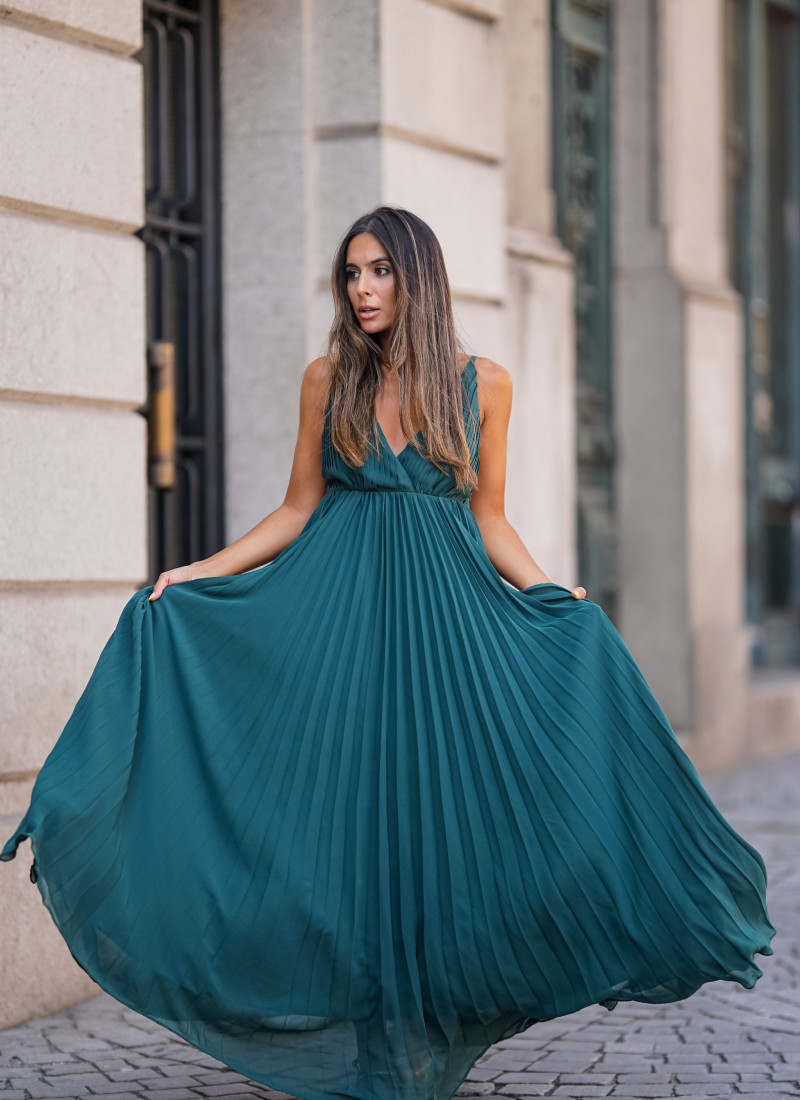 ÚLTIMOS - VESTIDO PLISADO VERDE