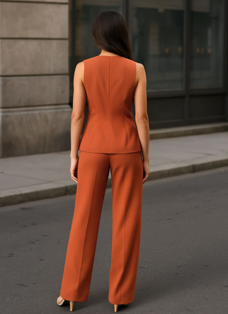 Gilet avec fermeture frontale à boutons. Poches latérales. Entièrement doublé. Combinez-le avec le pantalon de la même couleur et du même tissu.