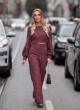 Pantalon taille haute. Tissu tweed premium italien. Fermeture invisible sur le côté. Édition limitée. Confortables et élégants pour tout événement.