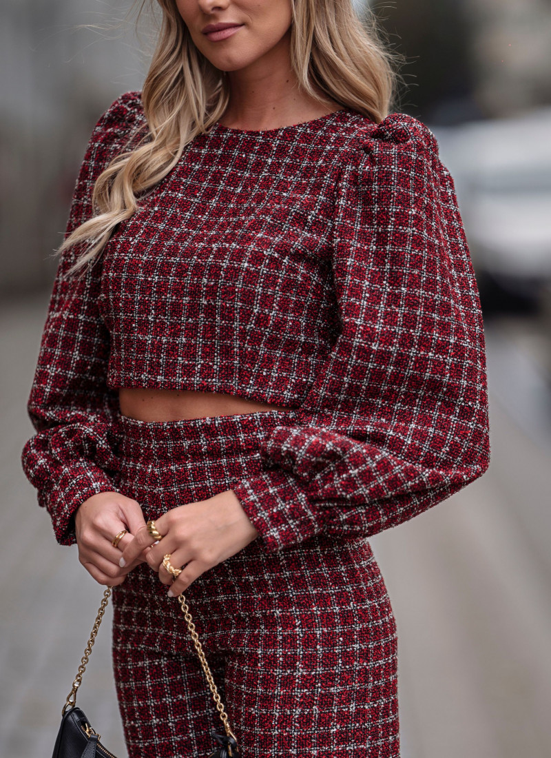 Top com decote redondo e manga comprida com punho. Fecho invisível nas costas. Totalmente forrado. Produzido em tecido tweed premium italiano. Edição limitada.